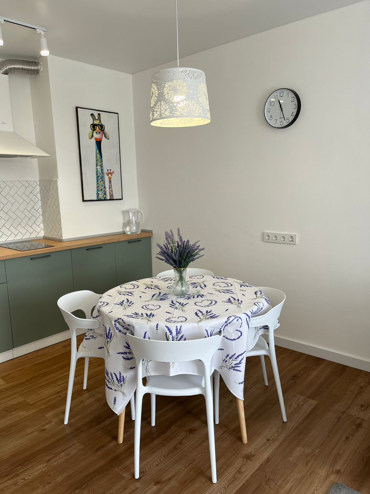 Dear guests, a cozy one-room apartment with modern and high-quality renovation in calm colors awaits you. In our apartments you can relax after a long day and unwind. The bedroom has a comfortable bed with an orthopedic mattress, the kitchen is fully equipped with all the necessary appliances and dishes for cooking. The bathroom has a spacious shower.