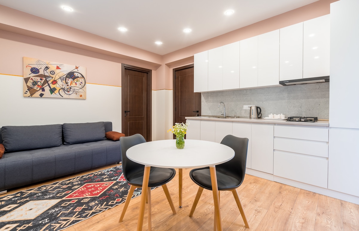 Bright and cozy studio hotel apartment in Gudauri is fully equipped and always ready to welcome new guests. The apartment with an interior that combines modern comfort w/ a warm atmosphere, is perfect for small groups of friends, families, and couples who like adventures, exploring new places, beautiful views, extreme sports, and more...