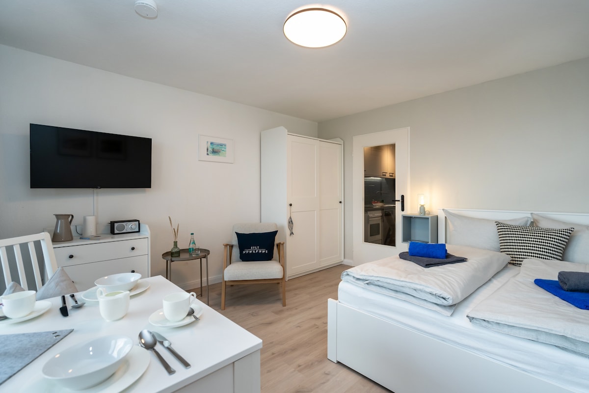 Quiet retreat for two who like each other! Island central on the outskirts of Westerland. Car parking space, Wi-Fi, bed linens, hand towels and dish towels included. In 10 minutes you can walk to the train station, to Sky and Famila in 5 minutes. You can reach the beach in 20 minutes. A beach chair is available on your terrace all year round.