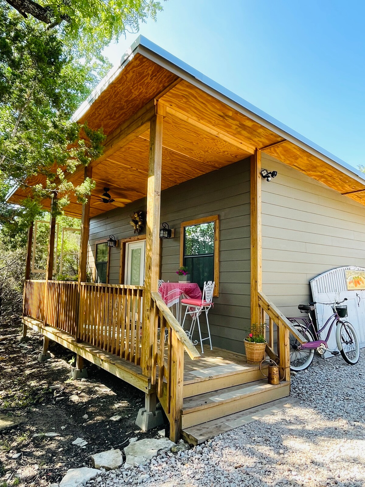 Travelers’ rest stop! Extremely cute and modern cabin style tiny home is yours to privately enjoy. Conveniently Located in a neighborhood half a mile from I-10, Exit 546. Will comfortably sleep 2 -3 adults (Queen bed and futon). Full fridge, stove top, microwave, dishes, pots/pans, utensils. Less than 10 miles away: Camp Bullis, Six Flags, Shops at La Cantera, The RIM has shopping, restaurants, night life…