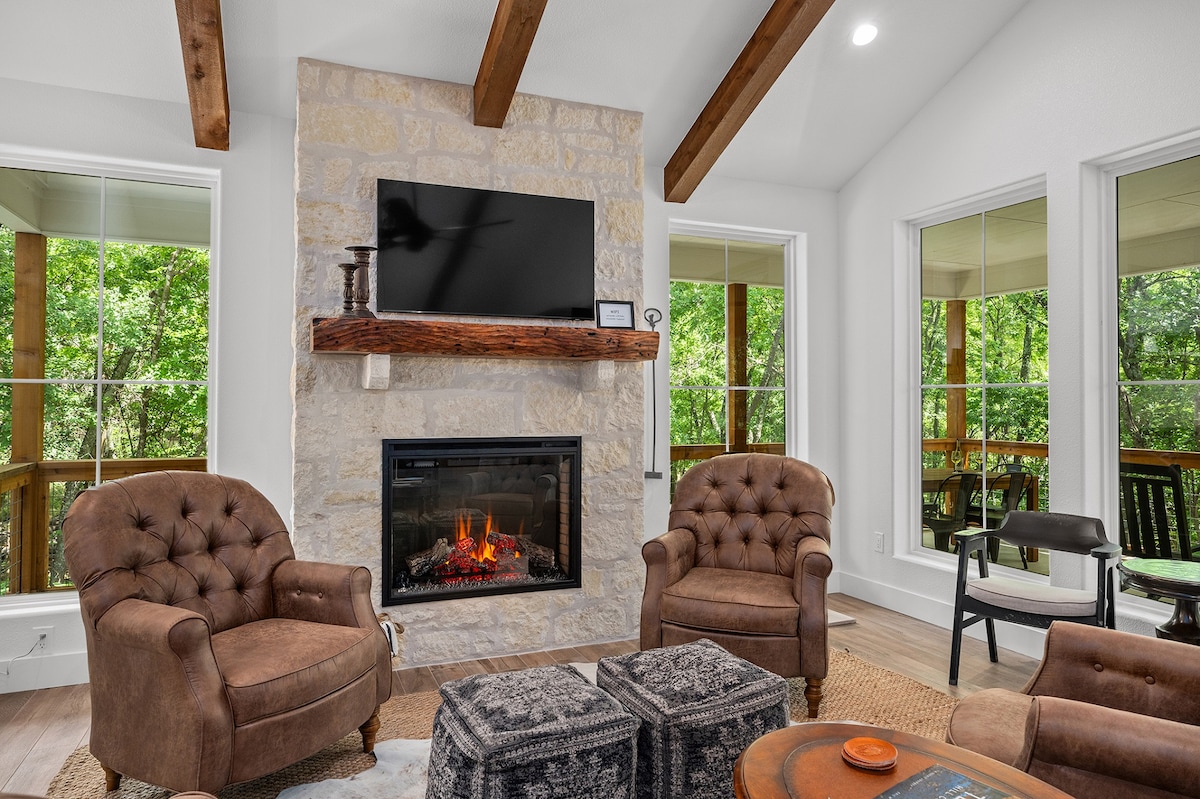 1911 farm-style home within Blanco State Park steps from the Blanco River. This historic retreat offers a blend of rustic charm and modern comfort, making it an ideal home base for families, friends, and nature lovers. Relax on the spacious front porch with river views, in 1 of 2 outdoor seating areas, or stroll the park trails and scenic surroundings. Room for 14 guests across 5 bedrooms and plenty of common space, this home is perfect for multi-generational getaways, or cozy group retreats.