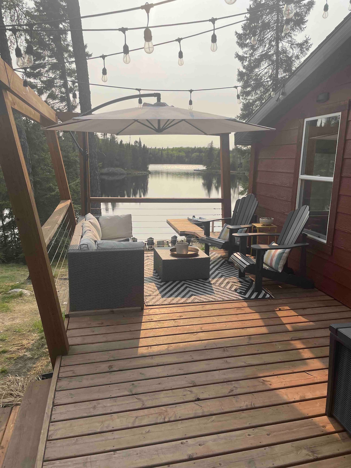 Enjoy our unique West Coast style cabin on beautiful Black Sturgeon Lake. Built in 2002, the cabin is nestled in the trees, and has gorgeous views of the lake. The open concept cabin is bright and airy with 20 foot ceilings and tons of lake front windows. A separate guest cabin can accommodate more guests and offer complete privacy from the main cabin. We have high speed, reliable internet for streaming and working remotely. This cabin is a great getaway any time of the year!
