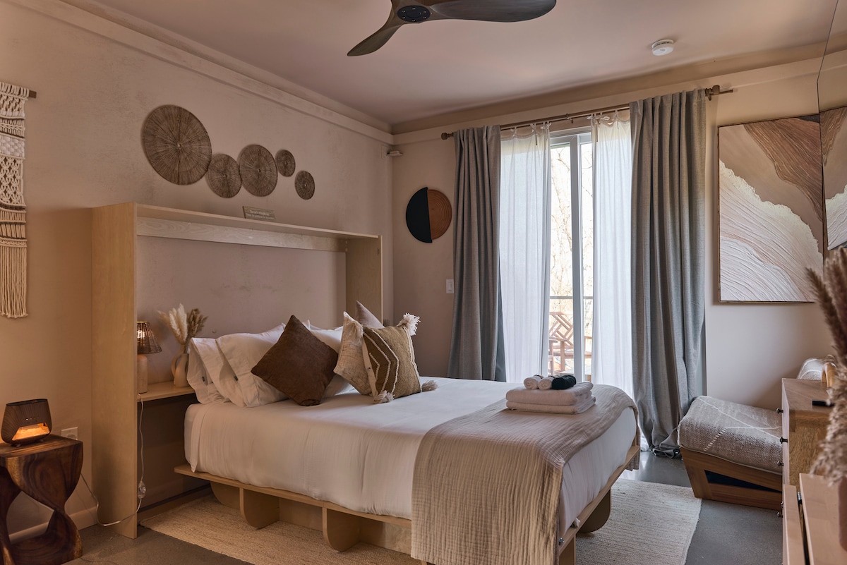 This suite is a beautiful private retreat complete with a projector for watching your favorite streaming service for the ultimate movie night. Centrally located and within 10-20 minutes of numerous local hospitals, universities, as well as various restaurants and downtown destinations, our guest suite offers a peaceful retreat in a convenient and safe location. We also provide a fold out desk that guests can use for a remote work space if desired.