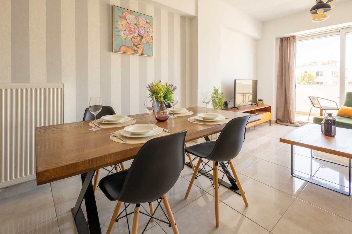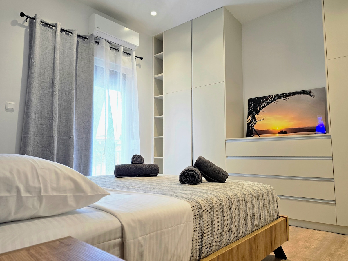 Stylish, spacious (47 sq.m.) one-bedroom ground floor apartment, newly built in 2022. Decorated with every attention to detail, the space aims at providing an enjoyable guest experience. Ideal for couples or families, located at a peaceful part of Piraeus, yet just 5 minutes away from the port by car. This is the place to be either for one night before catching a boat to the Greek islands or for longer stays, since it is fully equipped and the kitchen is suitable for meal preparation.