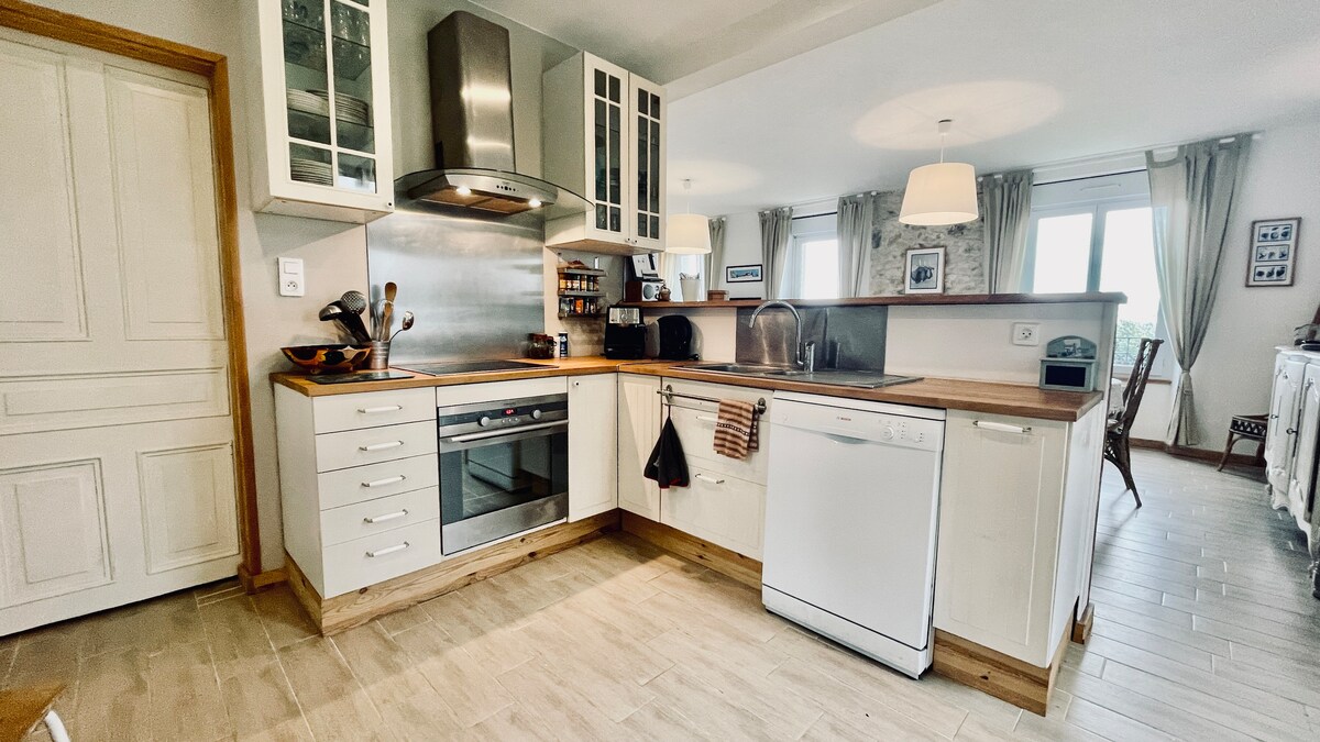 Welcome to Ty Kerizivin, a large country house, close to a farm, designed to accommodate up to 10 people in absolute calm, just a 5-minute drive from the beaches and close to Brest. Perfect for families, groups of friends or teleworking, it combines space, comfort and nature. 👨👩👧👧 Up to 10 guests 🛏️ 5 bedrooms – 5 beds 🛁 2 bathrooms 📐 130 m² 🌳 Large garden with terrace 📍 Plouzané