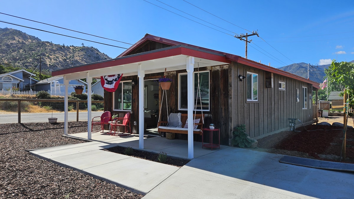 Charming 2-bedroom, 1-bath with a warm, barn-inspired vibe that sleeps up to 6 guests. Surrounded by beautiful mountain views, this cozy retreat offers comfort and plenty of character. Whether you're cooking in the fully equipped kitchen, exploring the nearby lake or river, there’s something for everyone to enjoy. In the evenings, watch the sunset and gather around the firepit for s’mores under the stars. Pet and family friendly, the Red Roof Retreat is sure to be your next favorite getaway!