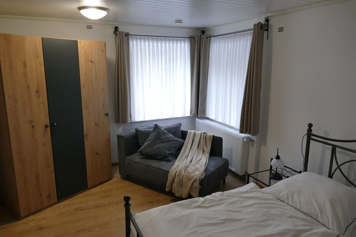 Spacious apartment with 2 bedrooms in a listed townhouse. Central yet quiet. 3 minutes from the train station - bus stop at the house. 5 minutes to the pedestrian zone. 30 minutes by car to the legendary Nürburgring. A family-friendly, uncomplicated atmosphere awaits you in a detached house. Ideal for couples, solo travelers, business travelers, & families. Free parking on the street.
