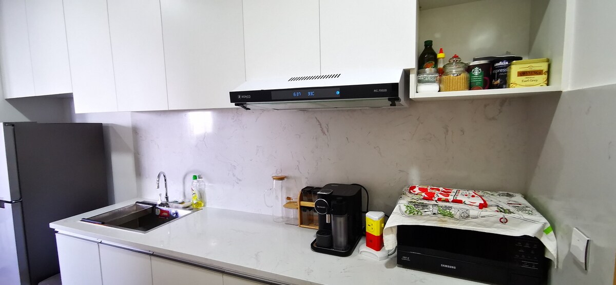 Enjoy a luxurious stay in our beautifully redesigned condo with top-notch appliances (65-inch smart TV, full kitchen, fridge, washer, smart AC, Japanese toilet…) with quality mattress and sofa. Perfect for family🥰, biz execs 💻 or lovely couples. ❤️Full amenities and services: Biz lounge, meeting room, golf simulator, Sky bar, pool, gym, coffee shop and kids playground. Extra beds available for more than 3 guests. We always keep making our house better!