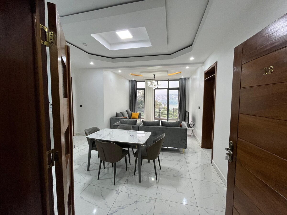 - Fully furnished apartment with AC in each bedroom - 2 Bedrooms / 1 bathroom - High definition Tv in each bedroom - Free weekly laundry service for long stays - Patio with a view of Downtown Kigali - 5 min walk to Kigali Car-Free Zone - 15 min drive to Kigali international Airport