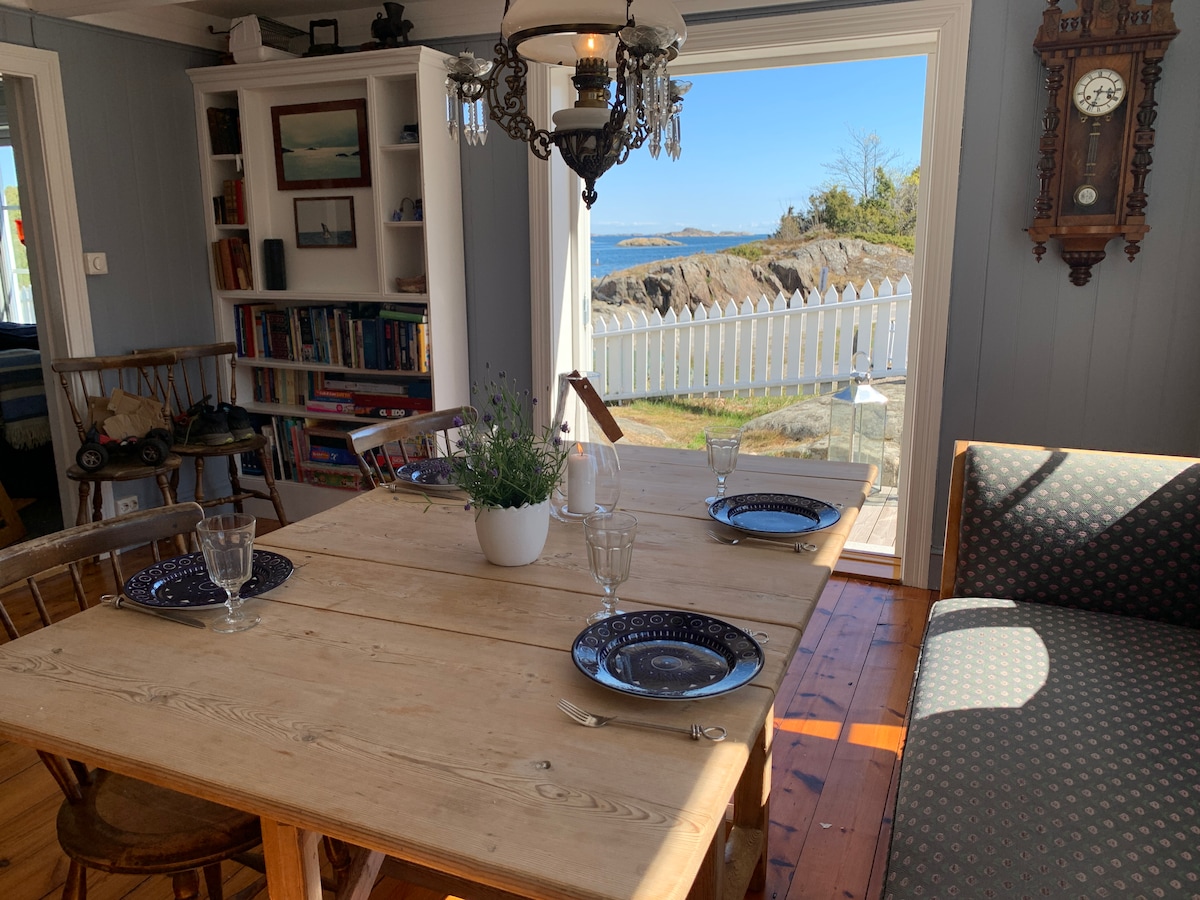 Cozy cabin on Tromøy with rowboat & jetty.
