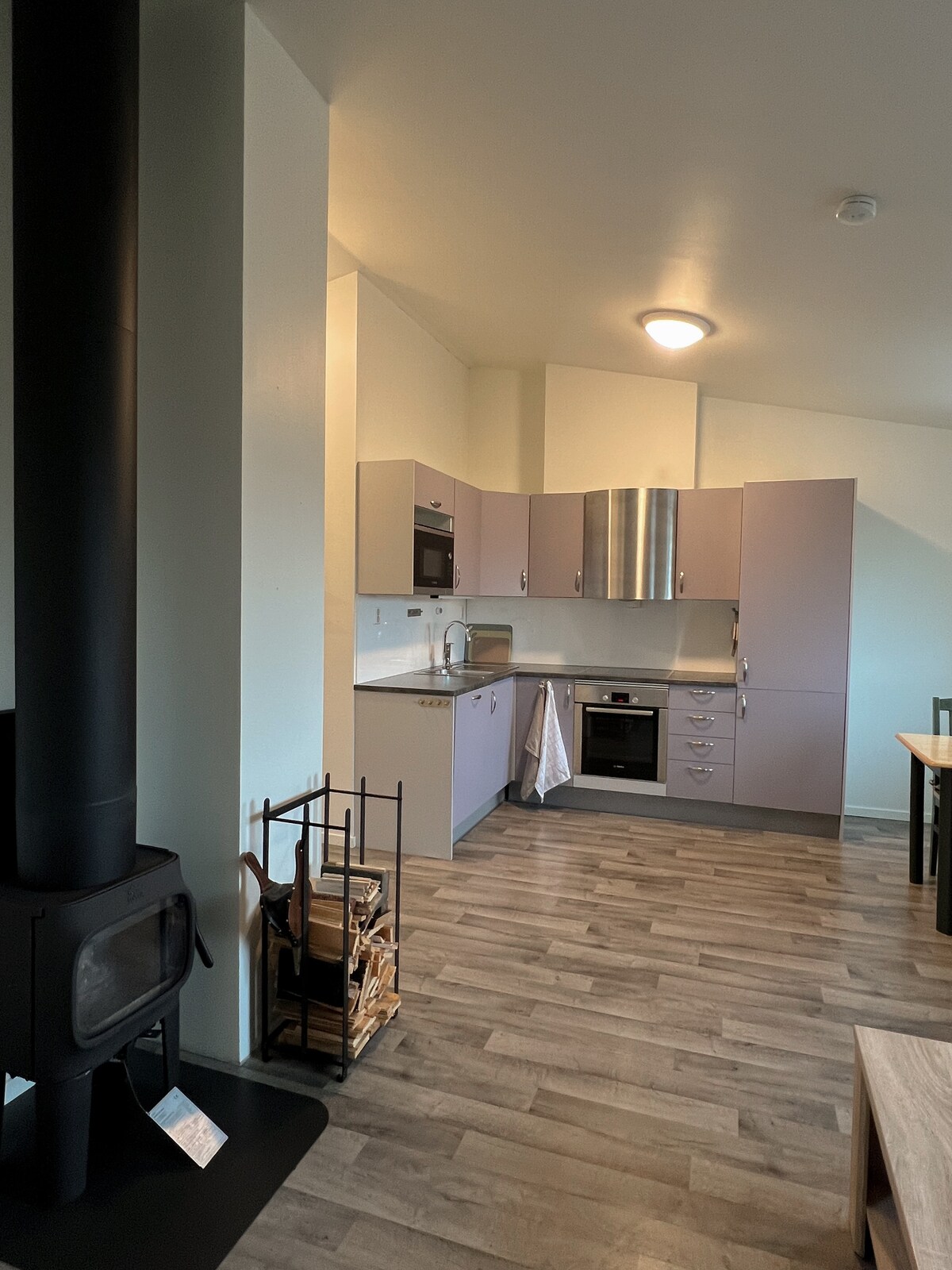 Welcome to my newly renovated apartment centrally located in Hesseng. It consists of bedroom, kitchen and living room in one room, separate bathroom. The bathroom is complete with floor heating and washing machine with dryer function. 40" TV with swivel wall mount. The wood-fired sauna is available to all guests for a small surcharge. I offer car rental and tour guiding for the stay, as well as a ride to and from the airport. For longer stays, please contact us and we will agree on a more favorable price. Looking forward to welcoming you!
