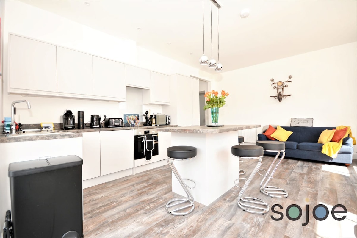 Sea Dwellers Rest, is a terraced house located 200 metres from beautiful, award winning Blue flag South Beach of Lowestoft. Spread over two floors with calming and comfortable interiors and contemporary styling, it can accommodate 4 people. Easy access to the beach, restaurants, supermarkets and a cinema. There is free parking along Clifton Road and other surrounding streets. Perfect for a quick weekend away, a sea side holiday with family, working remotely or contractors working in the area.