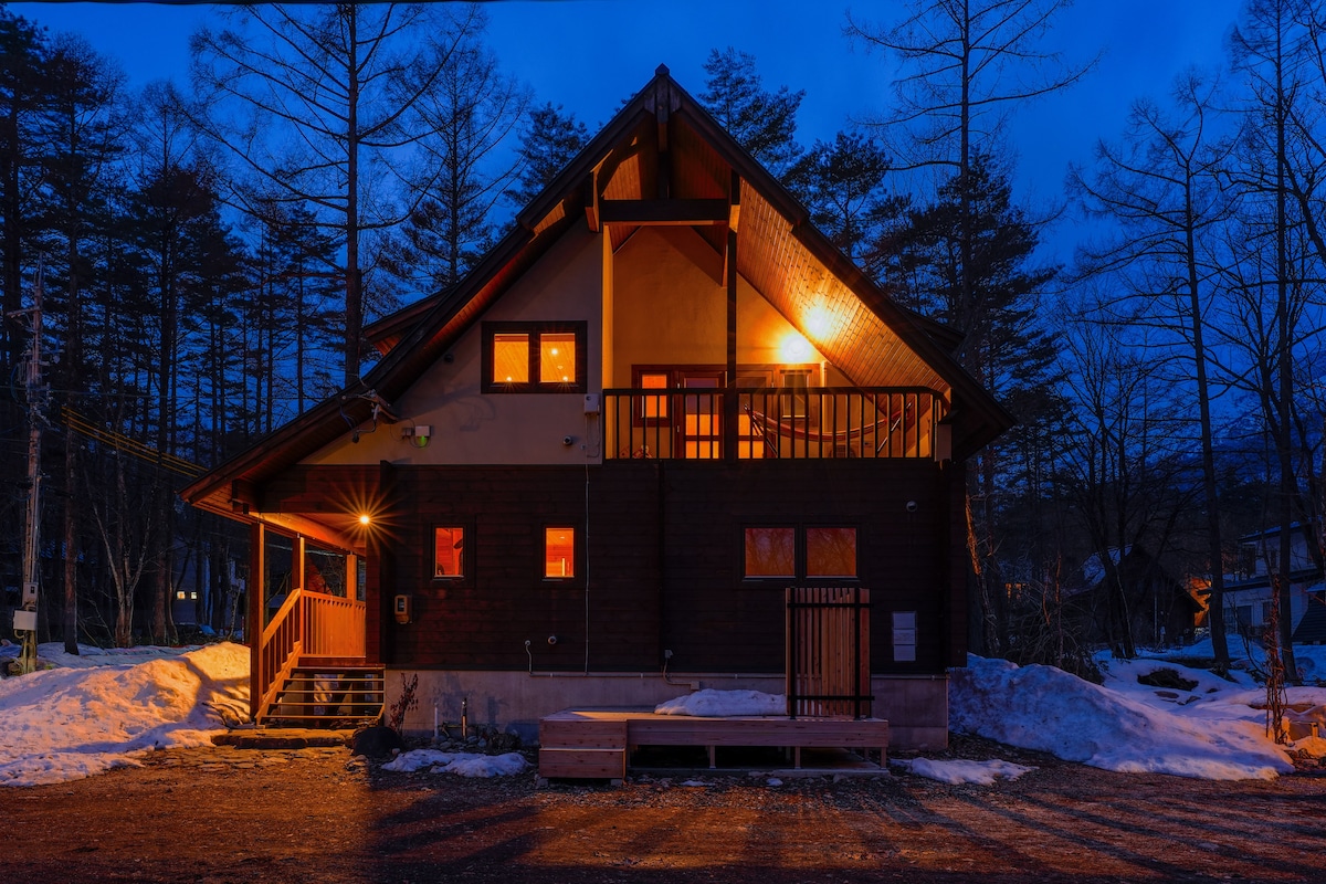 OPENING ★2020: A private rental lodge nestled in a quiet forest in the Ochikura Highlands, Hakuba,★ Nagano Prefecture, at an altitude of 800 m The house is fully equipped, and all three bedrooms are complete with a shower room and toilet, ensuring a private space for large groups. A living room with an open feel, a kitchen with a full set of cooking utensils, and a washing machine and dryer, making it a great place for long-term stays◎ It is about a 13-minute drive to JR Hakuba Station and Happo Bus Terminal, about a 5-minute drive to Tsugaike Kogen and Iwatake Mountain Park, and about 20 minutes to the Goryu Ski Resort. It is an ideal base for sightseeing to enjoy the nature of the four seasons as well as winter activities! Please feel free to ask us about transportation to Hakuba Village and Otari Village, as well as information about sightseeing spots!