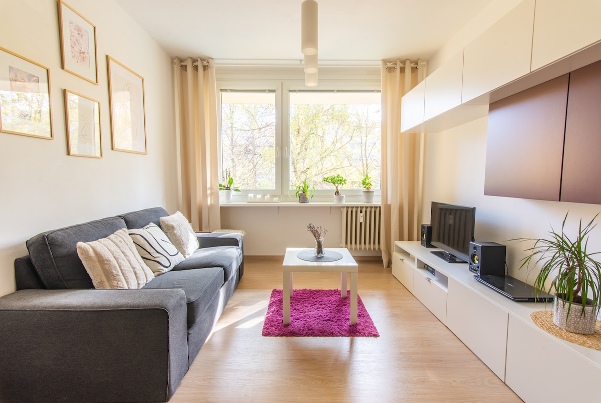 modest and cozy apartment unit, 48m2 for your trip! Close to Prague center - 27km from the flat, and at a fraction of Prague prices. Available: 1. TV 2. Wifi 3. Espresso machine 4. Microwave 5. Bath 6. Balcony for smoking 7. Desk for working 8. SOS washing machine