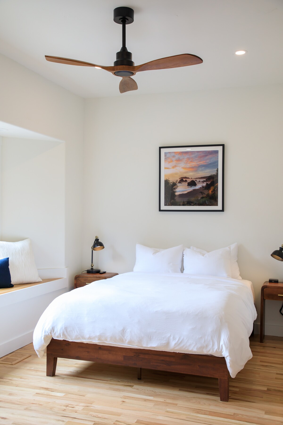 This upstairs suite (no elevator) features coastal artwork by Spencer Reynolds, bringing the beauty of Brookings’ land and sea indoors. You're just a block from Sporthaven Beach, with dining, fishing, and hiking nearby. Enjoy a full kitchen, separate bedroom with a queen bed, bathroom, and a living room with a second queen bed and recliner. Enjoy fast fiber Wi-Fi, cable, and free Netflix. Whether you're here to explore or unwind, this suite offers a relaxing stay with a creative coastal touch.