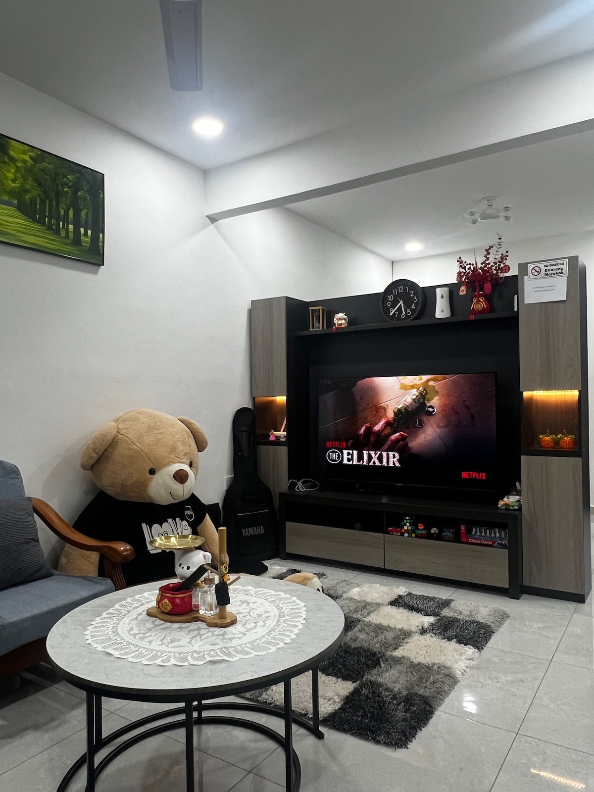 Centrally-located place • 1 min CHHS • 1 min Town Area • 5 min Gunung Lambak • 5 min Kluang Mall / Aeon Big • 5 min Hospital Kluang Up to 8 pax Wifi unifi Smart Tv YouTube Netflix Washing machine Iron Water dispenser Fridge Outdoor gardening(smoking area) *Bath towel will be provided according to the numbers of guest booked. * Mahjong * KTV ( karaoke full set system)