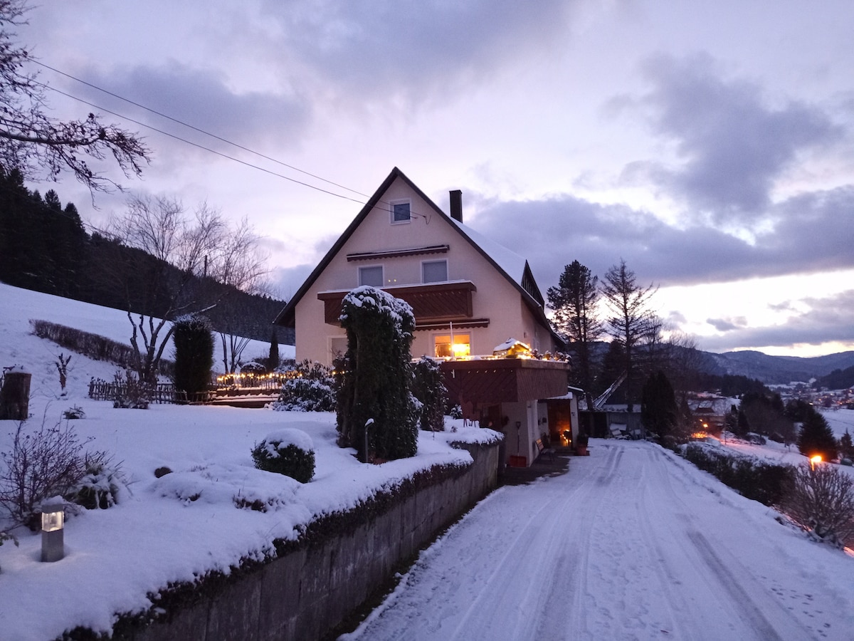 Here solo travelers or couples will find an ideal studio . Small but very cozy. ! It is 1 room to live and sleep! Immerse yourself in the world of the Black Forest in our newly renovated apartment. The original old wooden beam ceiling radiates rustic cosiness. The new bathroom with retro tiles also fits perfectly into the ambience. You are also welcome to use our sauna (for a small fee) or our cosy guest lounge. 1.Nov. - 15. one time Sauna is included!
