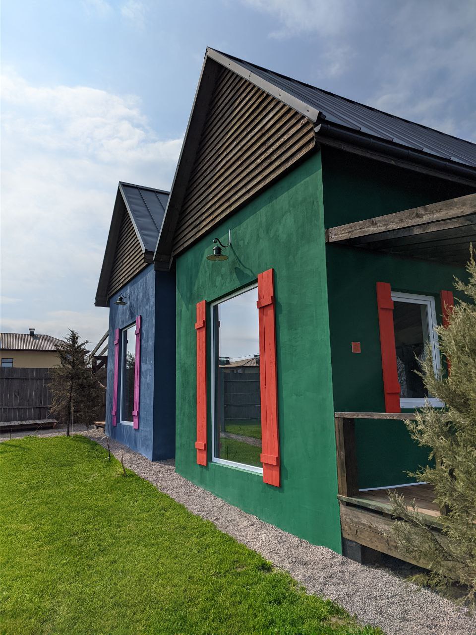 A house by the sea. We tried to make it cozy and cute. We used natural materials as much as possible. We made a large lawn with a basketball hoop. Walk and play barefoot - ground yourself from the electrified city. Inside the house there is a second loft floor with a skylight. It turned out romantic. Hammocks, swings, sun loungers will complement the picture of comfort. In the morning you will be awakened by the singing of birds. The beach is uncrowded, no one will disturb you and will not intrusively offer corn and churchkhela.