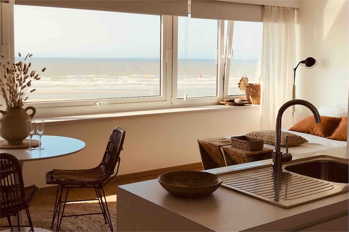 Our renovated studio is on the 8th floor and offers breathtaking sea views. We offer you everything you need for a relaxing stay by the sea. Everything is provided! Equipped kitchen with combi oven, dishwasher, Nespresso machine, Smart TV, WiFi, bed and bath linen. At the entrance, there is a large parking lot. The dike, restaurants and shops are located about ten meters from the building.