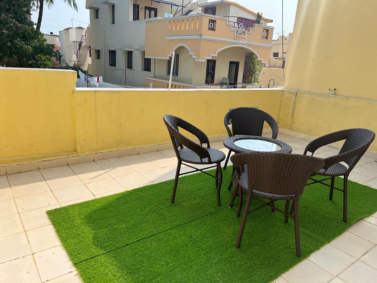 Safety and comfort of your family is our top priority. Your family will be closer to everything when you stay at this centrally-located place. Located at a major intersection of NHs, any part of the city is reachable in less than 15 mins. With ample parking space, beat the infamous traffic congestion by parking the car safely and use local rides to roam around the town. With all the essential amenities like your home, give time a break at Pondicherry. Have a pleasant stay!