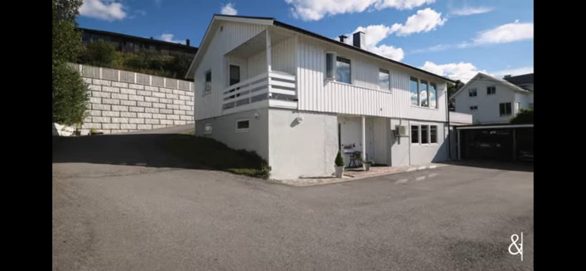 Apartment with lovely views over Altafjorden. The apartment has a separate entrance, living room, kitchen, bathroom, laundry room and 2 bedrooms. The apartment is about a 15-minute walk from the city center where you will find shopping malls, the Northern Lights Cathedral, cinema, restaurants, bars and much more. 5 minutes walk to the grocery store. The location is perfect for those who like to stay active as the light trail and hiking trails start right next to the house. Car can be included in the rent for an extra charge. Get in touch if you are interested.