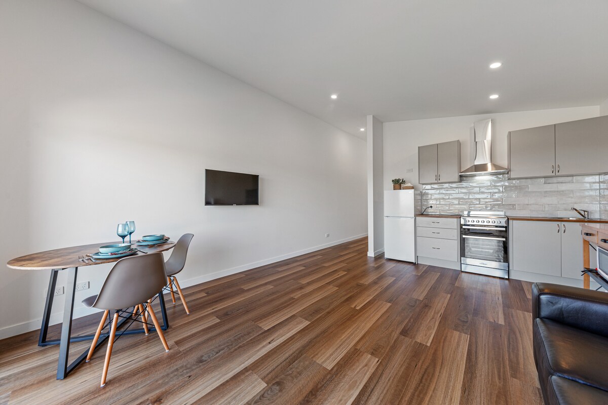 Air bnb for 2 in the heart of Loch Village Originally a gallery, Space On The Hill is a large free standing, open plan warehouse style space. It is in the heart of town, has views over rolling green hills and is 200 meters from the Great Southern Rail Trail. • 1 x queen bed • 1 x bathroom, walk in shower • Full kitchen • 2 x tables (dine/work) • Lounge space with 2 sofas • Separate comfy sofa bed • Super warm, huge split system heating / air con • Village bustling by day, serene by night