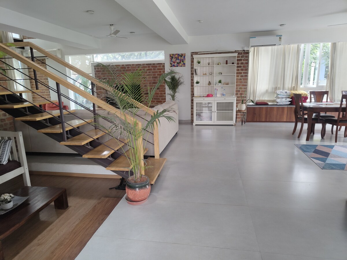 "One of the best places we have seen in Bangalore" reviewed by numerous visitors. This uniquely designed 4BHK Duplex is lapped in nature's luxury, this place is nestled among the trees with floor to ceiling windows and natural light streaming through. Centrally located in one of the most prestigious localities in Bangalore, 3rd Block Koramangala, this gem find is Solar powered, ecofriendly and sustainable.