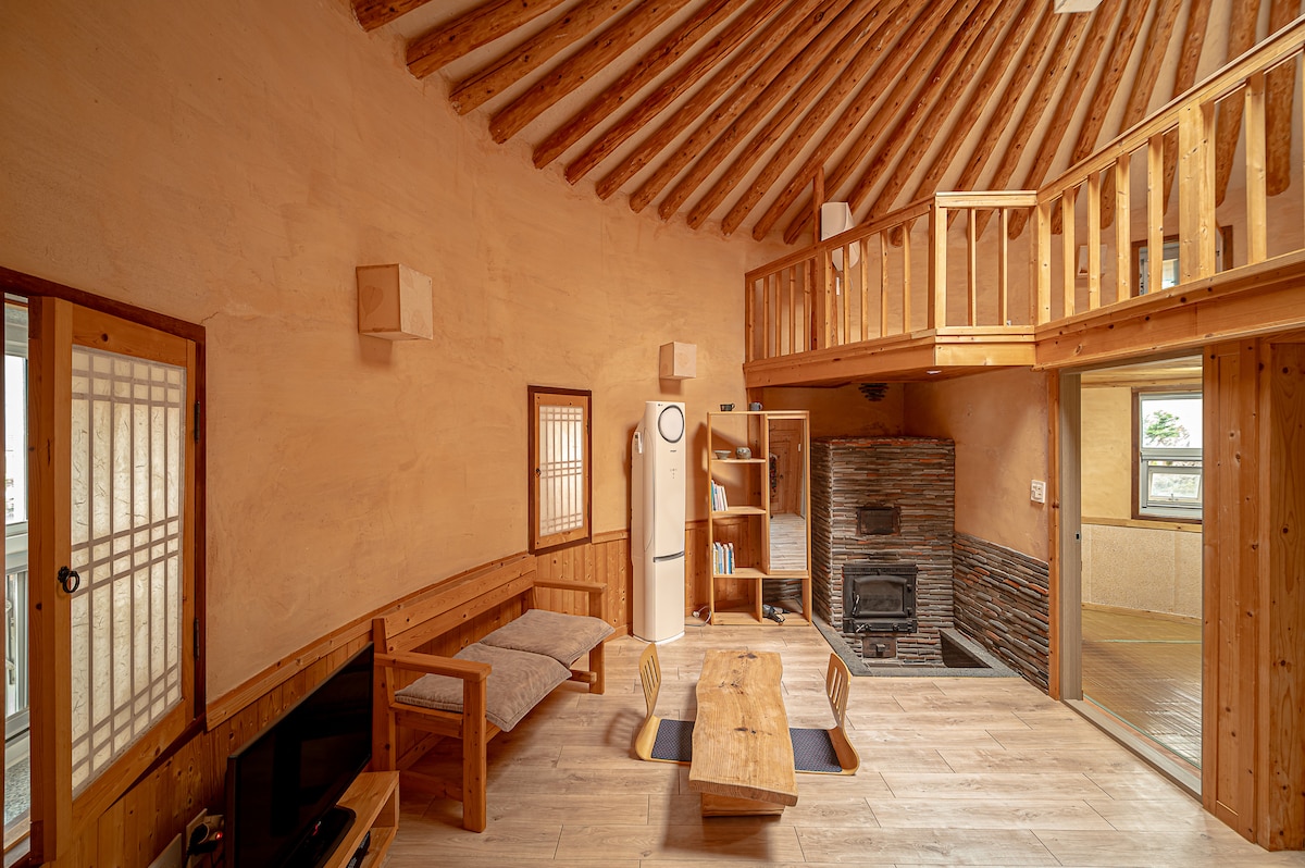 [Gangwon-do, Yeongwol] Hot and warm fireplace room_Mureungdowon Earth House_Gudulbang_Gangchon Cans_Mountain View