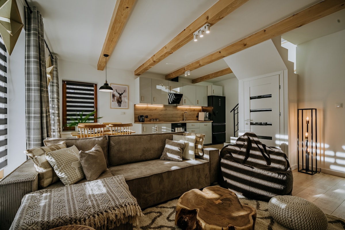 We are offering a very unique place, handed over in December 2022. The apartment is cosy, fully equipped to ensure comfortable and convenient stay, in a quiet area. We have made sure that everything in the apartment is of good quality, it's modern with elements of local culture. It has 3 balconies to enjoy the weather outside :) The apartment building includes only 7 apartments. You can easily get from here to all the most important local attractions, a shop, restaurant, Polana Szymoszkowa