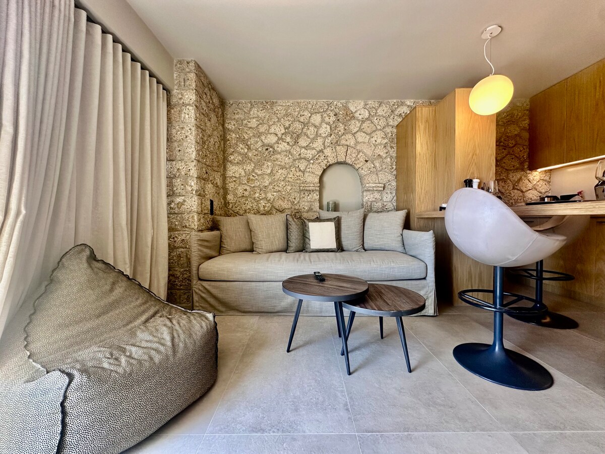 Double bedroom apartment with private bathroom and private veranda. Part of an old mansion built in the 18th century. Recently renovated so that it can comfortably accommodate two people. At the very center of Spetses island. Five minutes walking distance from main port. Five minutes walking distance from most attractions (main market, restaurants, bars, museums, Agios Mamas beach).