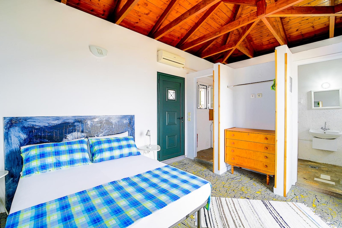 This is a stone studio only a few min walk away from the beach. Though it is located a short scroll away from Kioni port, one of the most popular and beautiful ports of the Ionian, a short walk away the other side, you will find yourself in a rural area, where farmers keep their animals and harvest the land with olive trees. It is a controversy, but this is where two contradicting lifestyles meet. A warm welcome is awaiting you, with top quality products, gifts of the Ithacan land.