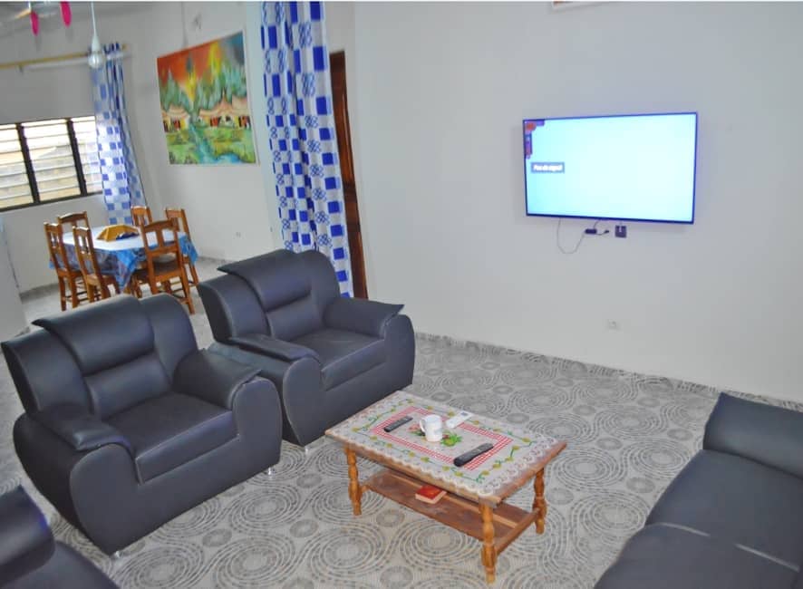 Nouvel apartment a loué a Kpalimé: Situé à 50 metres de la route nationale notre nouvel appartement vous offre un salon luxueux, 3 chambres spacieuses climatisées, une boyerie extérieure, une terrasse et un accès facile a la route goudronnée. L'appartement a tous les accessoires de cuisine pour vous faire sentir à la maison. Nous disposons d’un agent de sécurité 24/7 á la disposition des clients. Votre satisfaction sera guarantie.