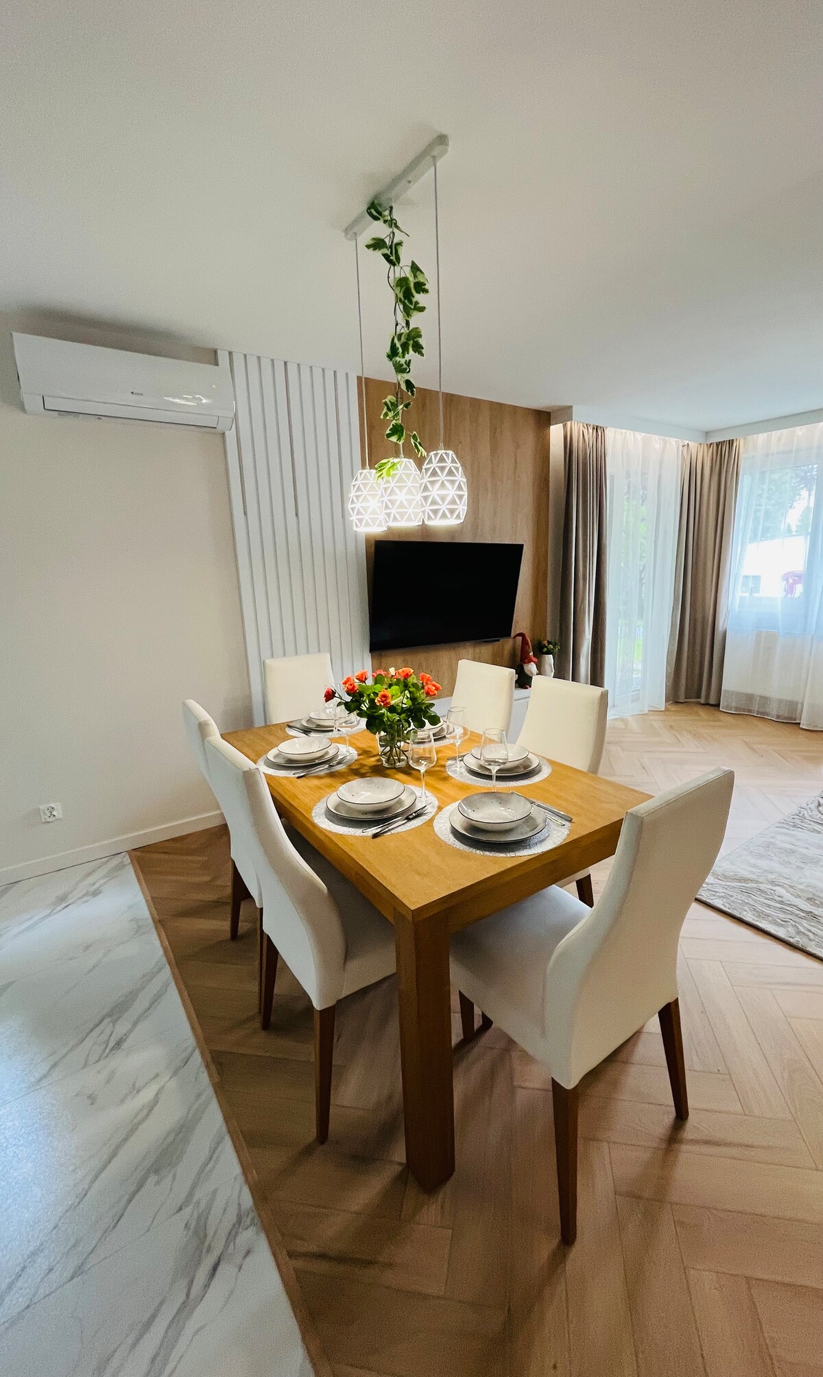The apartment is in a very good location, just 2 km from the Main Square and the city's biggest attractions in a very prestigious building from 2018. The access is very good, it is only 3 stops of bus 130 from the railway station and bus station and you get off at the apartment. Walking from the station or the Main Square will take about 15-20 minutes. Guests highly praise the decor and amenities, there is a fully equipped kitchenette and free Wi-Fi. During the pandemic, we do not provide towels.