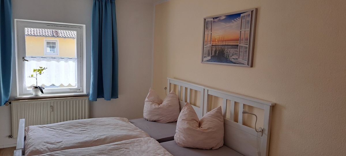 Take it easy at this unique and tranquil getaway. The apartment is about 30 square meters and is located on the second floor and is accessible via a shared staircase. It has a separate bathroom, which has a shower and toilet. We have made it cozy for you with a comfortable 140 x 200 cm bed and a pull-out sofa. Free Wi-Fi is available to you at all times. There is also a parking space at your doorstep free of charge.