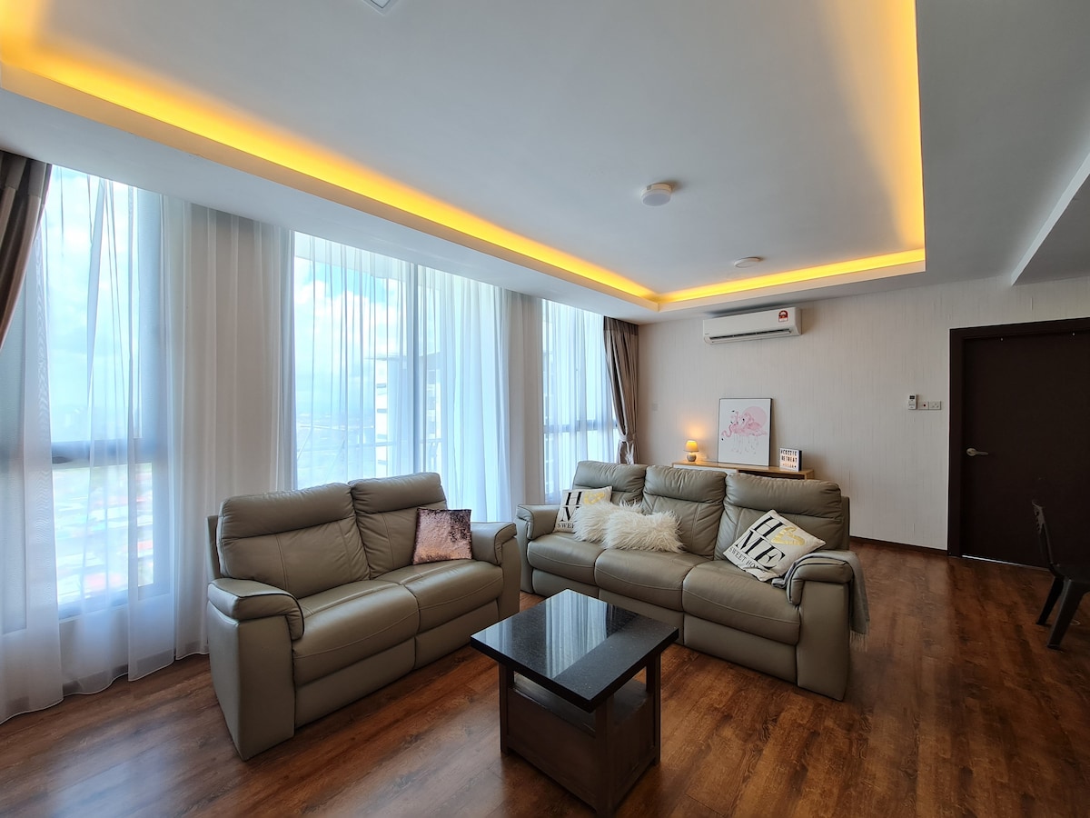 Experience stylish urban living in this elegantly designed Studio, where modern comfort meets serene ambiance & city charm. Situated in a peaceful yet vibrant neighbourhood, it offers a retreat while being close to airport, malls & City Center. Ideal place to relax&recharge, enjoy the panoramic Kuching City view from your private balcony. This studio w/ kitchen can accommodate up to 3pax, perfect for couple, business traveller & family. ★ Complimentary Parking (subject to availability)&Pool