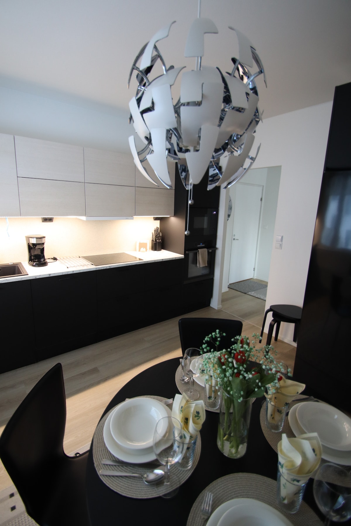 Enjoy a stylish stay at this centrally located property. The apartment is located on the top fifth floor of the elevator building. All downtown services are within walking distance. The train station and the travel center are less than 5 minutes away. The apartment is clean and newly renovated. The bedroom has a high-quality Asko Bonnell double bed with a smart foam mattress. In addition, a 80x195cm sofa bed in the living room, which we will make up at your request.