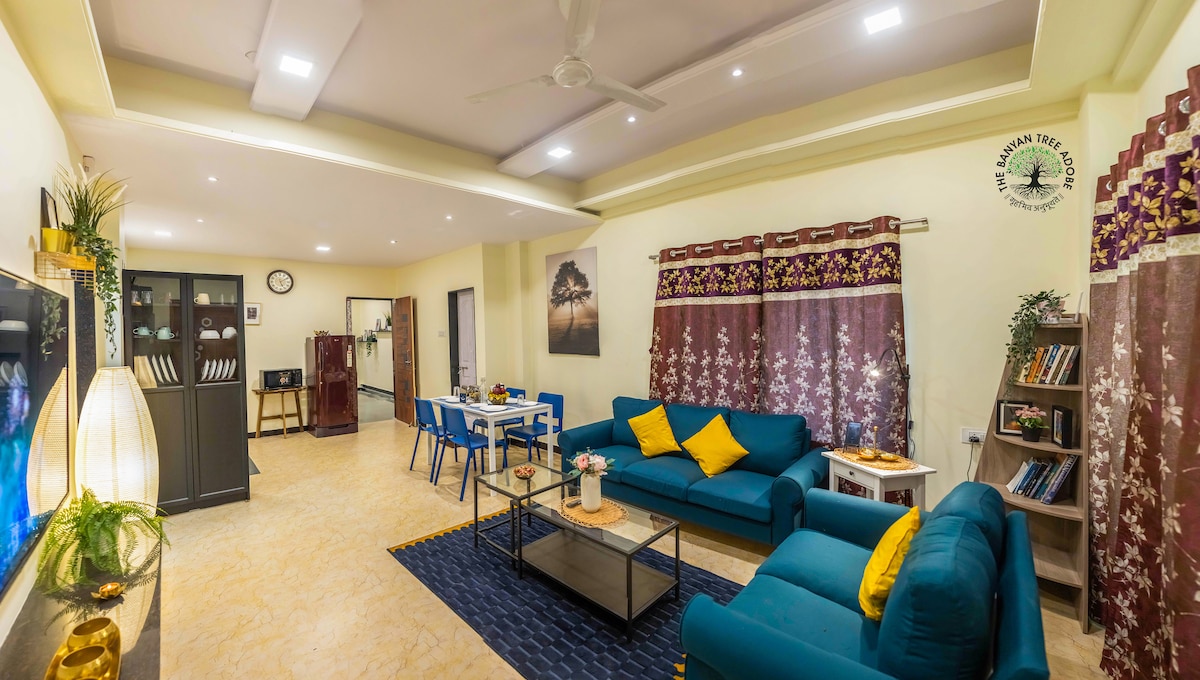 Mirje’s Deck is a cosy & luxurious 3 Bedroom with 2 attached bathrooms, in the heart of Kolhapur, designed for families and groups seeking comfort and peace. Enjoy elegant bedrooms, modern baths, AC, Wi-Fi, and Tata Sky HD. Cook your favourites in the fully equipped kitchen, then unwind on two serene outdoor decks—sip coffee at sunrise or relax under sunset skies. A perfect blend of luxury, warmth, nature, and style for your Kolhapur stay.