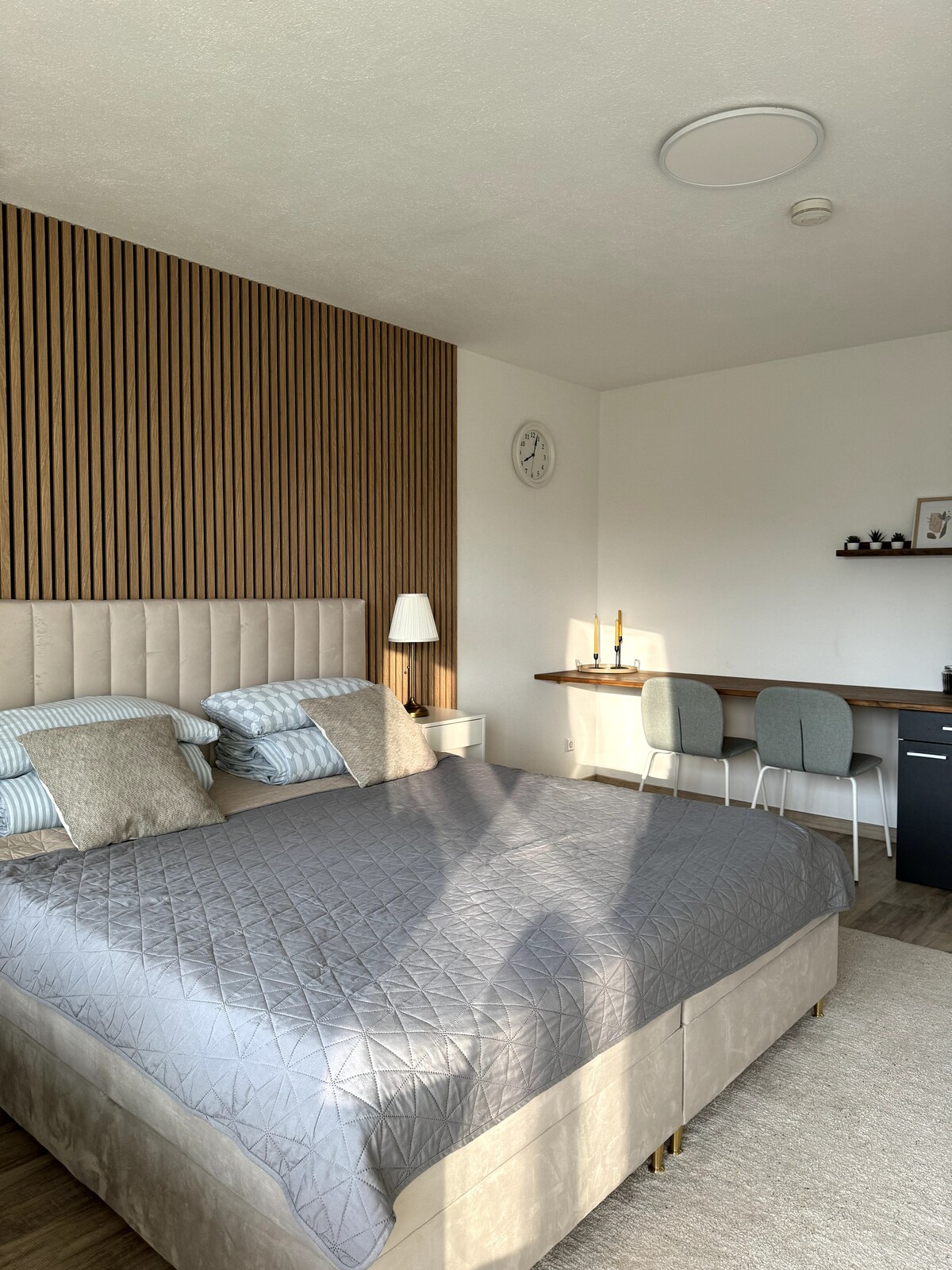 1-living/bedroom, modern kitchenette, bathroom with bathtub, 55" smart TV, Wi-Fi, balcony and parking. This extravagant 1-room apartment was newly renovated in 2022 and is waiting with joy for vacation guests. The apartment is about 35 m² in size, has a modern and well-equipped kitchen, a bathroom with a bathtub and a balcony. Parking is available right in front of the building in your own parking space. You sleep in a high-quality and comfortable 180 cm wide box spring bed.