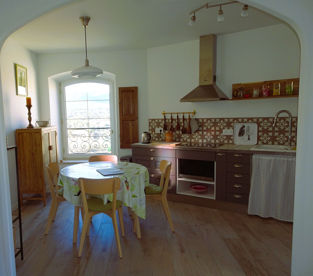 L'Insouciance is a renovated apartment (2023) decorated with a stylish, natural simplicity. Bright, quiet, and offering superb views of the Grand Luberon. Rated 3 ears of corn (3 épis). A small east-facing terrace is perfect for enjoying sunny breakfasts, and a private patio provides a relaxing space to unwind with a good book. The apartment features a lovely living area with a lounge, a fully equipped kitchen, a separate bedroom, and a bathroom. Reversible air-to-air heat pump. Speed internet.