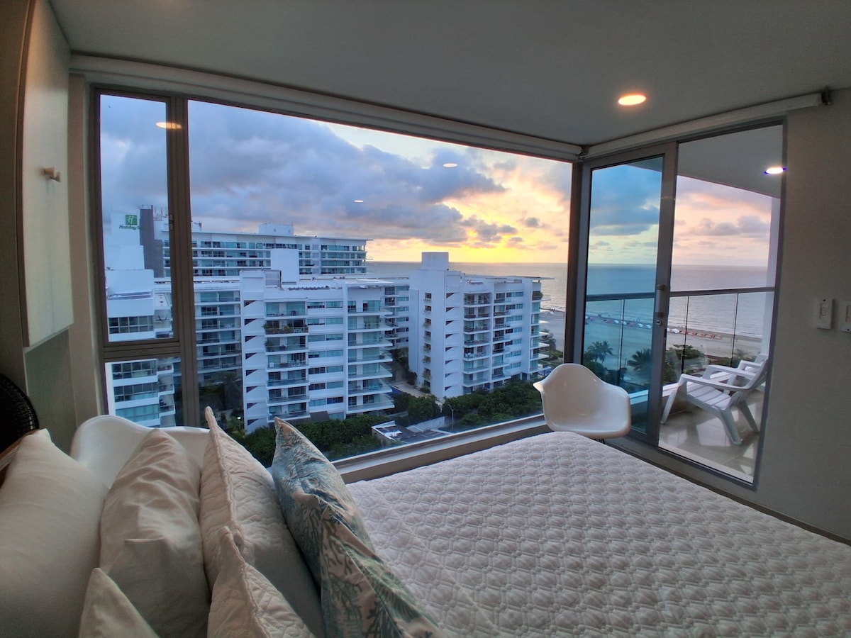 Awesome condo at The Beach Radisson Resort Residences, extraordinary views of the Cienaga, beach and the city; direct hotel beach access to the nicest beaches of Cartagena. 5 minutes to the airport and 10 minutes to the Old city (Wall City) by car . Guest have access to all the Resort amenities like gym, multiple pools, bars, restaurants, spa, sky jacuzzis, wifi, A/C, BBQ areas, 24/7 front desk, security, bellman, room service, etc. Just registered guests are allowed in the apartment