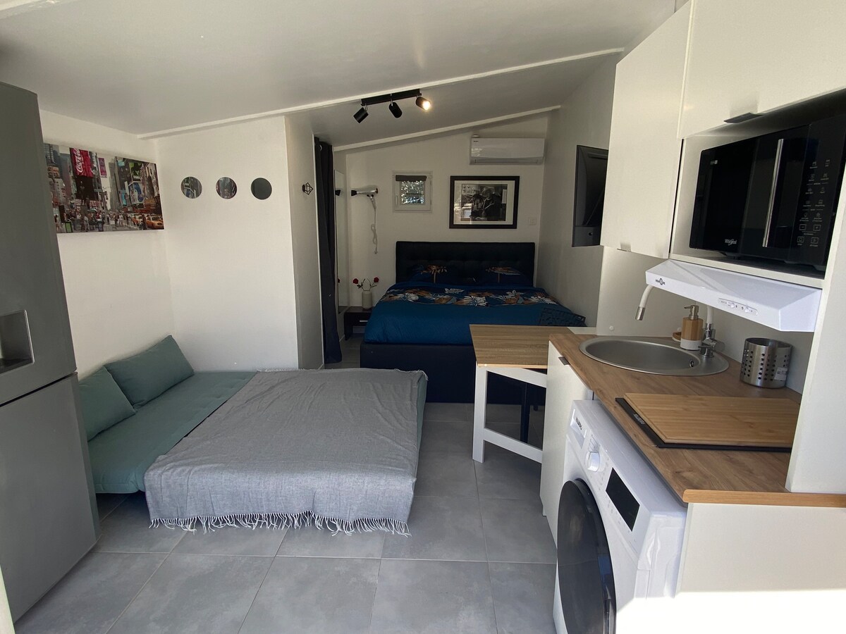 Nice little independent Provencal house located on a plot of 200 m2 with individual entrance and private parking, located at the foot of the hills. Studio with mezzanine, kitchenette and bathroom Sleeps 5 (1 bed + 2 convertible) The position of the accommodation allows you to travel in about 30 minutes to the sites of interest and surrounding cities: Marseille, Aix-en-Provence, beaches of Cassis and La Ciotat, Toulon, as well as the great natural sites (Sainte Victoire and Sainte Baume)