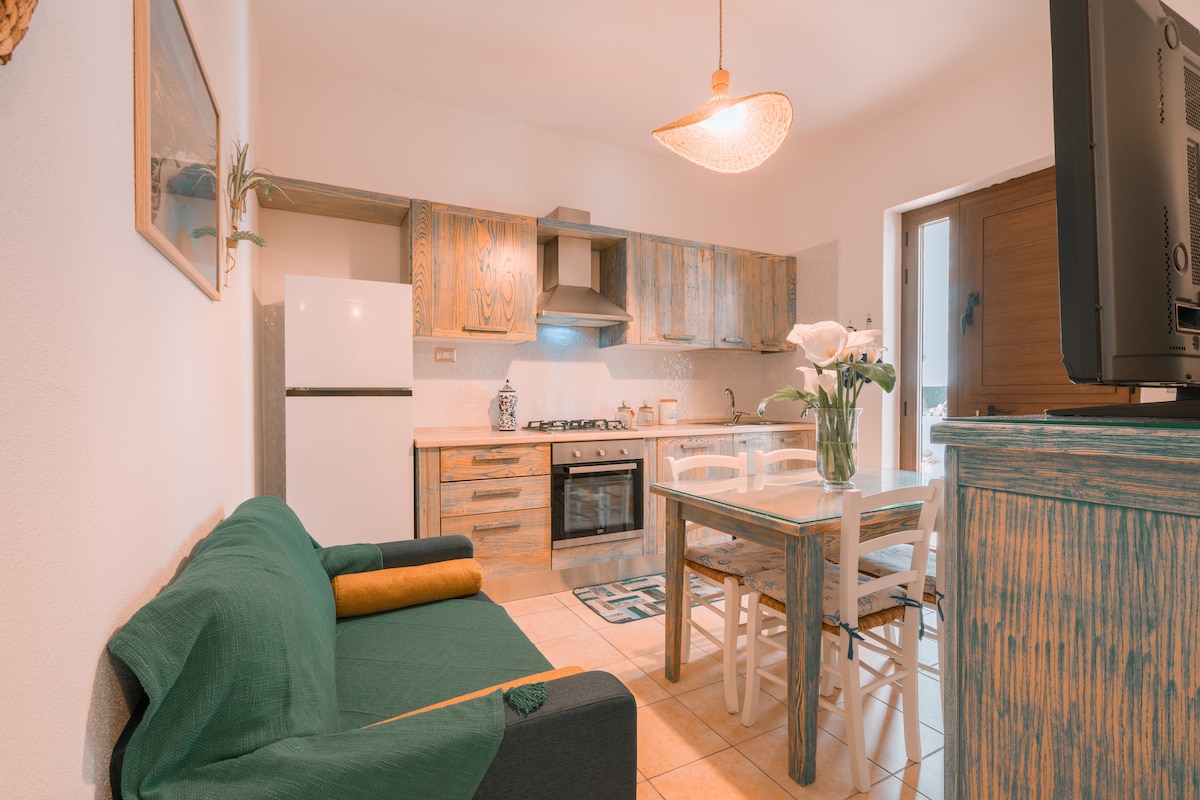 Located in La Caletta, a few metres from the beach, Giobo Mare features one double bedroom, one twin bedroom (convertible into a double upon request), a fully equipped kitchen, a bathroom with a shower, and a separate laundry room. Outside, you’ll find a large patio complete with a bbq, dining table, chairs, and a private parking space. Thanks to a cosy sofa bed in the double bedroom, Giobo Mare can accommodate up to five guests—making it the perfect retreat for families or groups of friends.