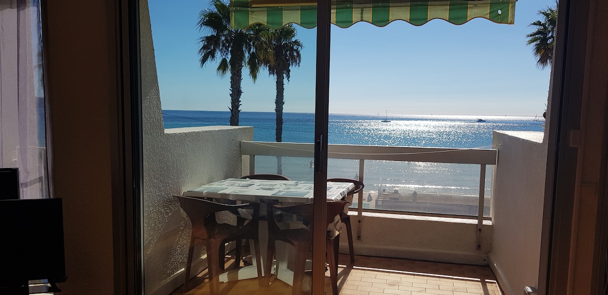 Waterfront 2-room apartment with private parking in a secure residence Living room entrance with terrace access and superb sea view Equipped independent kitchen (sea view also) One bedroom with storage closet A bathroom and an independent toilet Living room sofa bed that can sleep 2 people round table chairs Plenty of storage, access to the sea on foot, private place in the residence with electric gate Sheets and towels are not included as well as electricity in the price