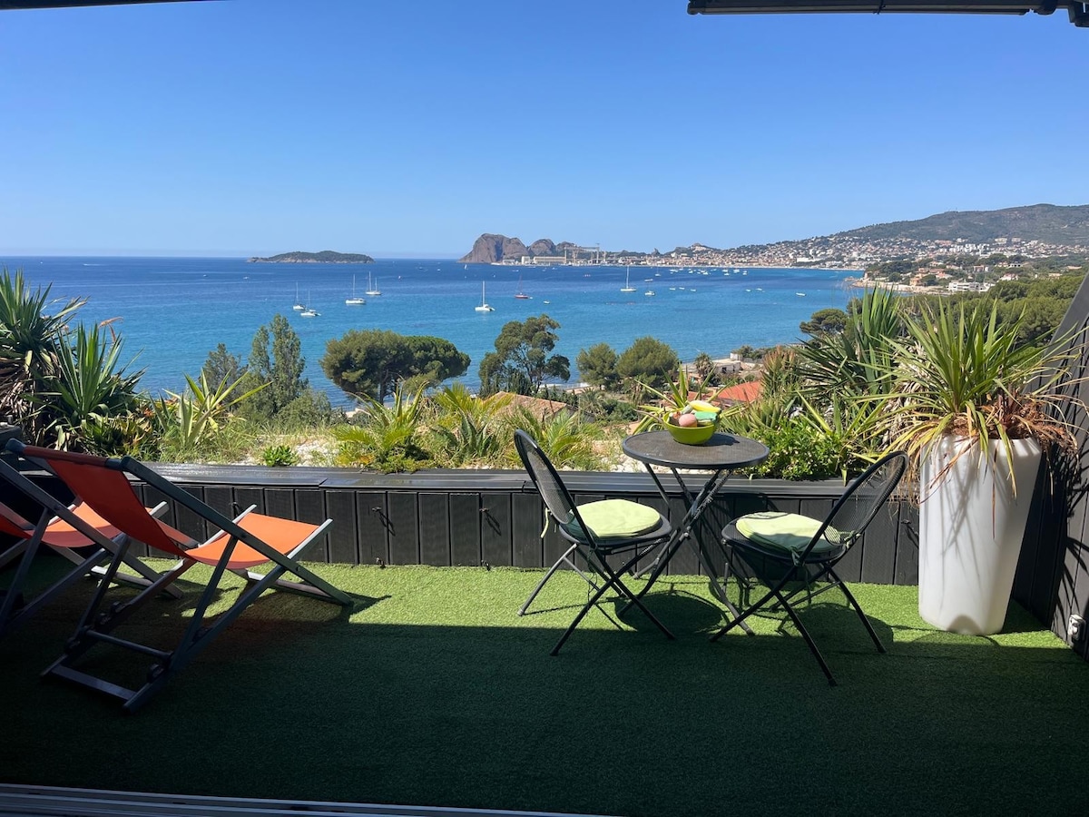 This beautiful apartment-villa with indoor spa and terrace with sea view will offer you a gentle break in a unique setting on the heights of Bandol, close to the city center, beaches and shops. It is located in a residence secured by an electric gate, on the ground floor with direct access to the landing from the residence's private parking lot. Guests can park their car near the property. You'll enjoy a lovely view of the Bay of Bandol and Bendor Island.