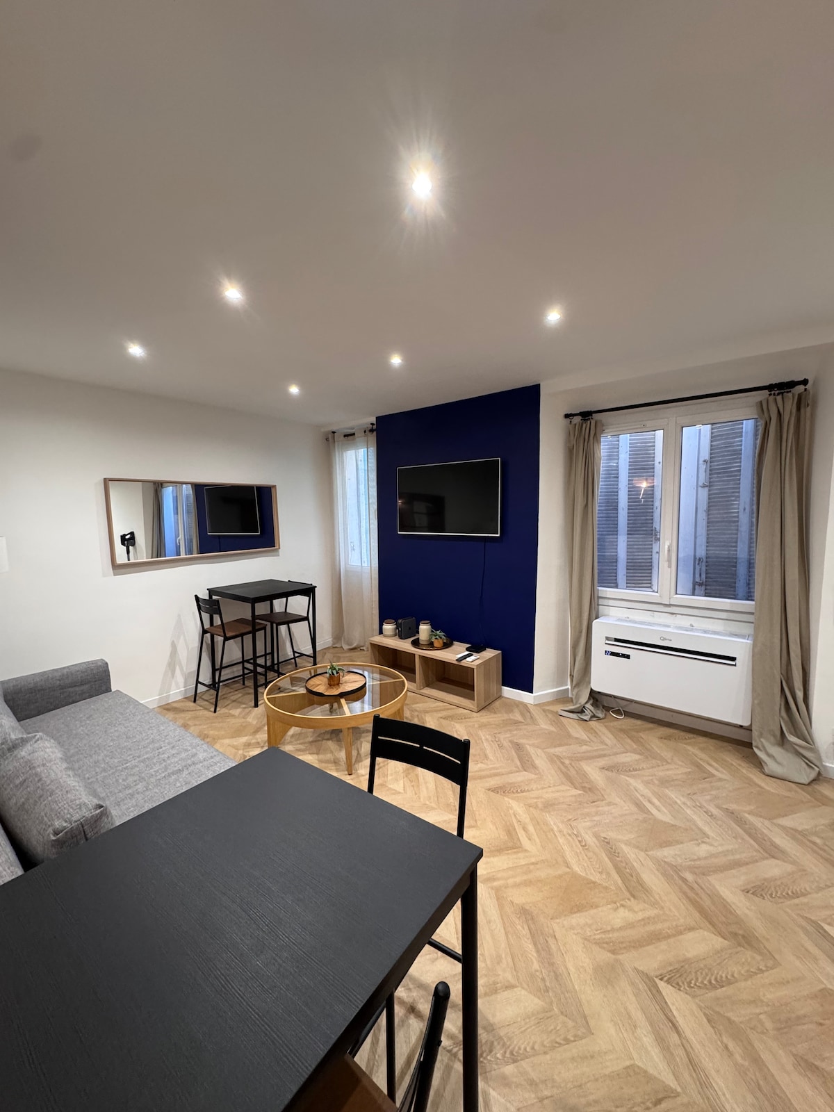 Joli T2 de 25 m2 au 1er étage ( sans ascenseur ) avec coin couchage séparé , espace très bien optimisé. Rénové de juin à août 2019. Déco pleine de caractère avec tomettes au sol d’origine, carreaux ciment dans l’entrée de l’immeuble, carreaux marocains dans la salle de bain. Emplacement idéal, centre ville historique face au Café de l’horloge ouvert 7/7. Literie de qualité, matériaux méditerranéens.