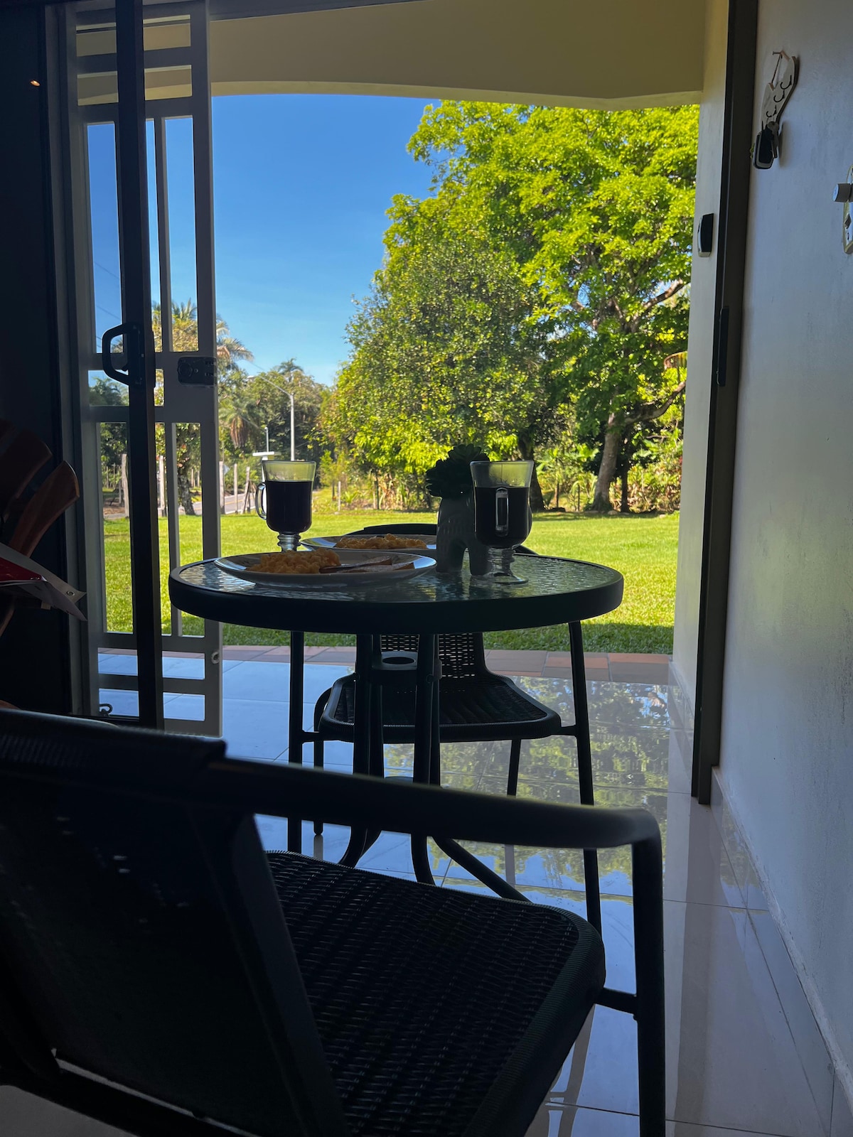 Relax with the whole family in this quiet place, just 10 minutes from downtown David and 25 minutes from the tourist Boquete. Close by you'll find shopping malls, restaurants and services, but far enough away from the hustle and bustle of the city. A safe, comfortable space full of details to enjoy your stay. Safe house with 3 bedrooms, Café-Bar style terrace, patio with barbecue and gazebo, air conditioning and all the amenities to enjoy your stay.