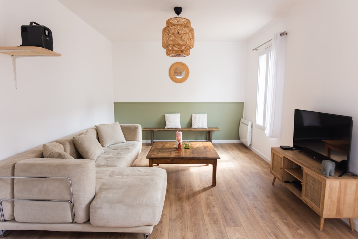 7 minutes from Puy du Fou and close to Les Herbiers, located in the heart of a beautiful Vendée town, less than 2 minutes' walk to all shops. Our fully renovated 90 m2 furnished apartment with all amenities has recently opened its doors and is waiting for you. Unpack your bags, the beds will already be made upon your arrival with towels provided. Feel at home in the JIM House with everything available.