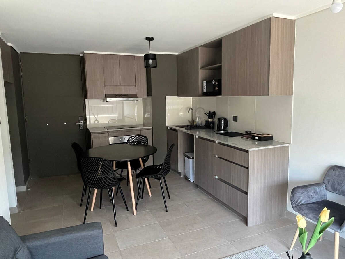 Modern apartment in La Florida – Ideal for 2 to 3 people Enjoy a comfortable and well-connected stay, steps from the Mirador Metro. The building offers excellent common spaces that will make your experience even more enjoyable: Pool Coworking Laundry Garden with areas to relax Plus, you'll be close to everything: Minutes from La Florida malls La Florida Hospital and Bupa Clinic Monumental Stadium (Colo Colo) Ideal for work, tourism or events "There's no parking"