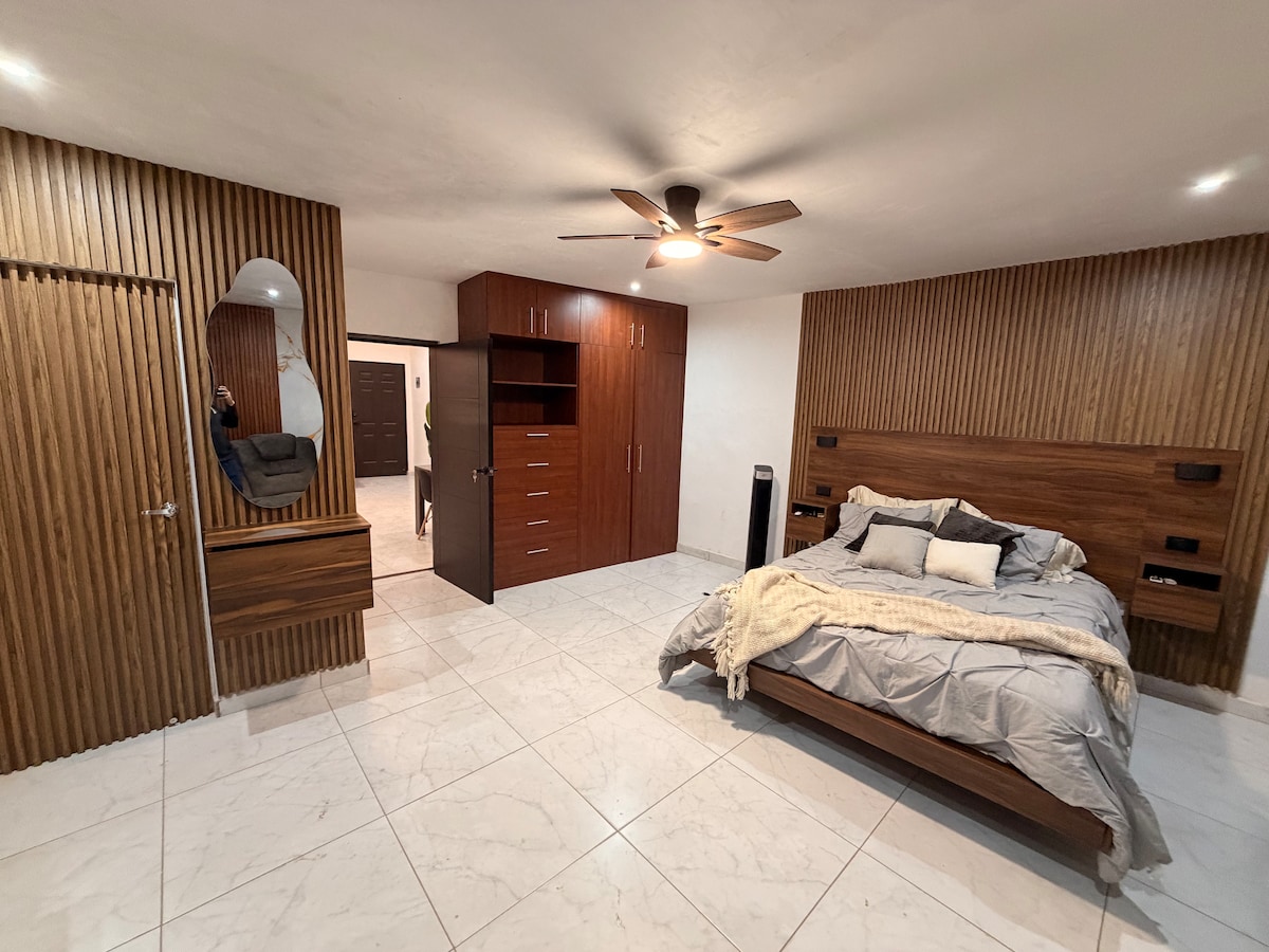 Spacious upstairs apartment with equipped kitchen, closed garage, 2 bedrooms with full bathrooms and terrace. In Colonia Las Praderas, near Plaza Patio and Ley Valdez Sanchez. Safe and easy access area. The entrance shares the garage with the main house, but the arrival is independent, you can pick up the keys at any time in the lock box. Services included: internet, hot water, washing machine, ceiling fan, kitchen utensils, dual minisplit (hot/cold), garage.