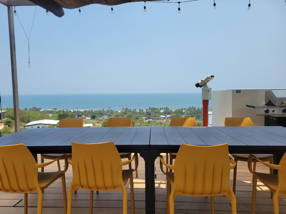 Luxurious huge Beautiful modern hilltop home overlooking the beaches of el Majahual and San Blas. Truly a paradise on earth. Just 3 min drive to the best surfing location like El Tunco. Great restaurants. Top of the line sleeping. You get the best. We provide you with a fully stocked kitchen as well as barbecue and a wood stone oven. Each room will have everything you need from Towels, top brands Shampoo and conditioner body wash. Top line Mattresses. No Hot water. Weather is too ho
